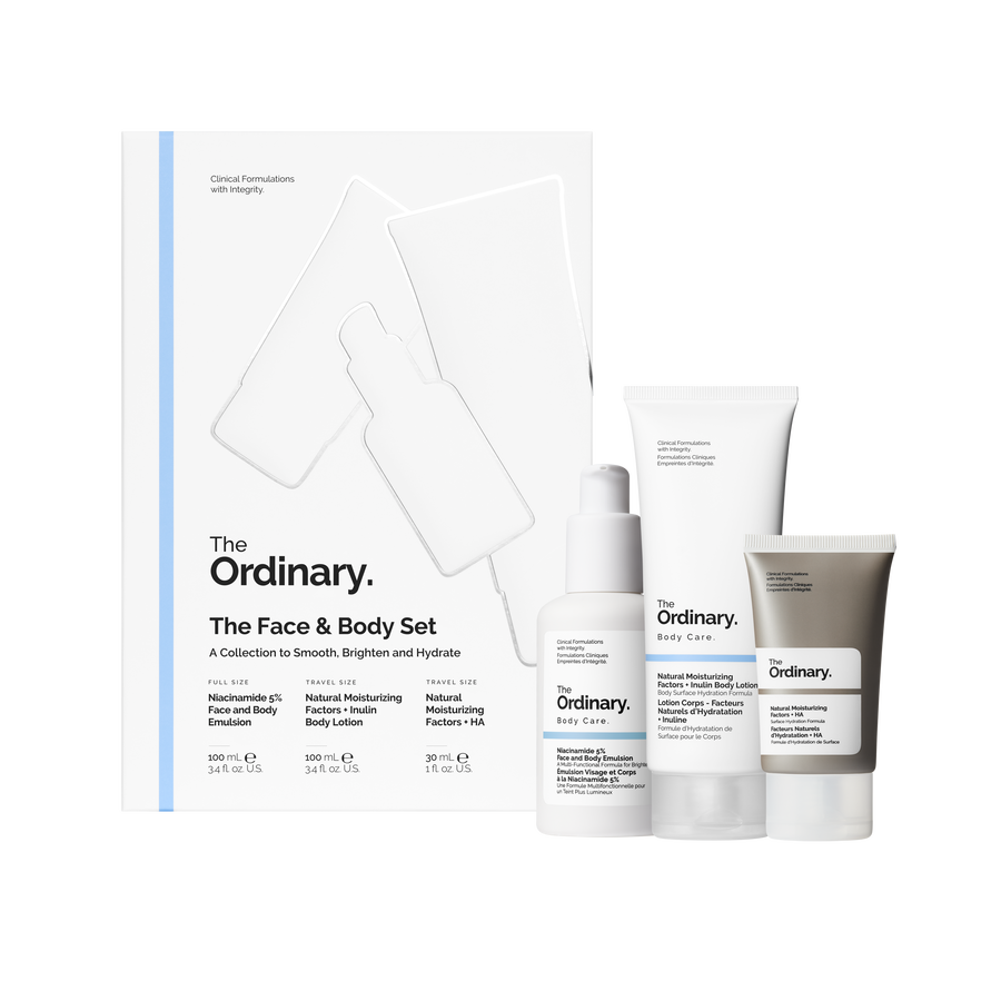 The Face & Body Set includes a collection of targeted formulations to apply ingredient-led skincare to both your face and body.